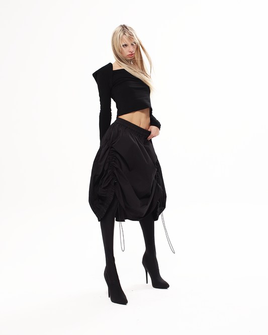 BLACK DRAWSTRING MAXI SKIRT - (SOLD OUT)